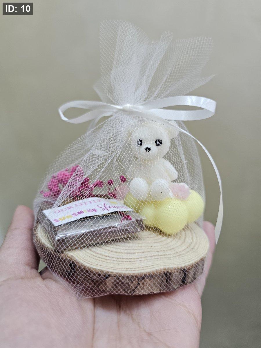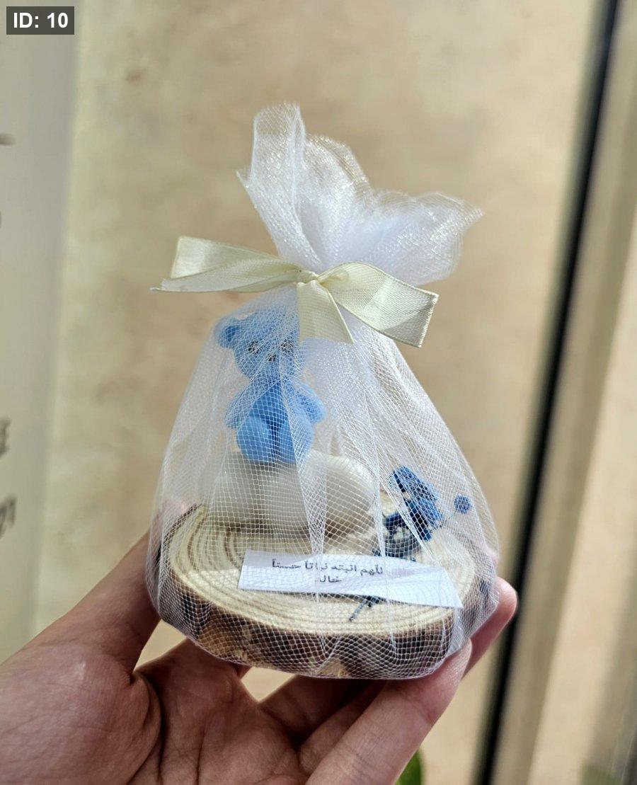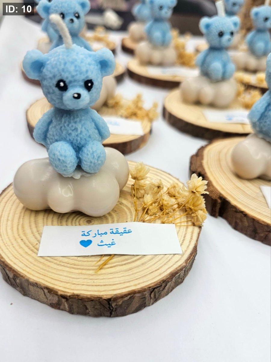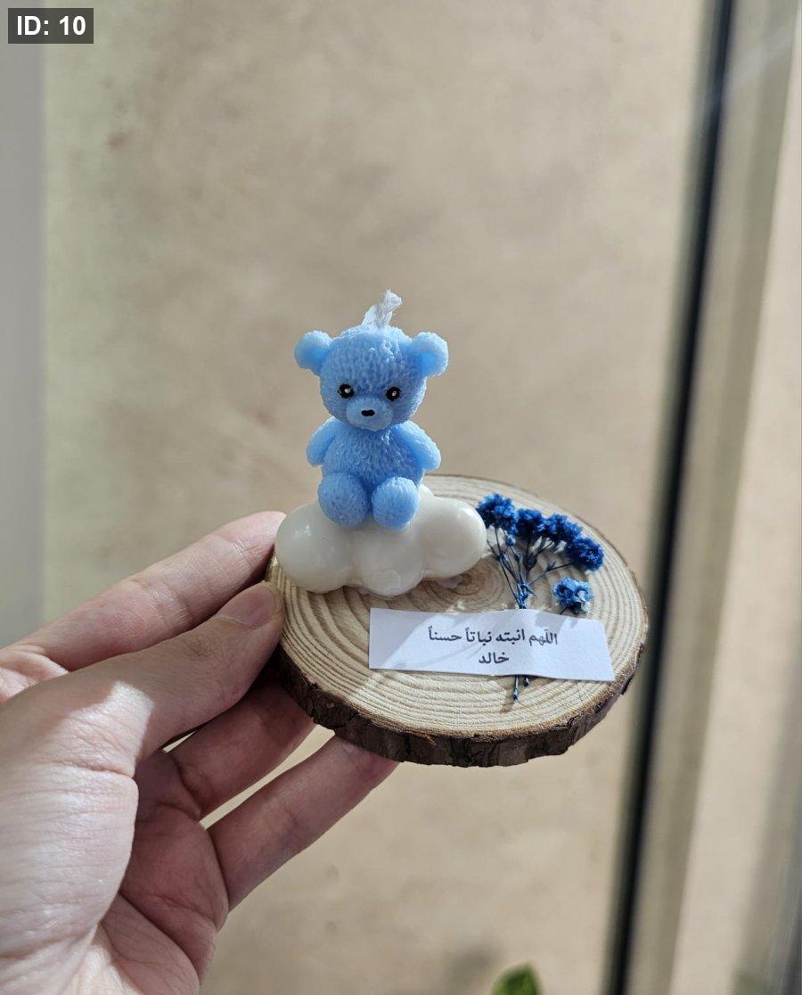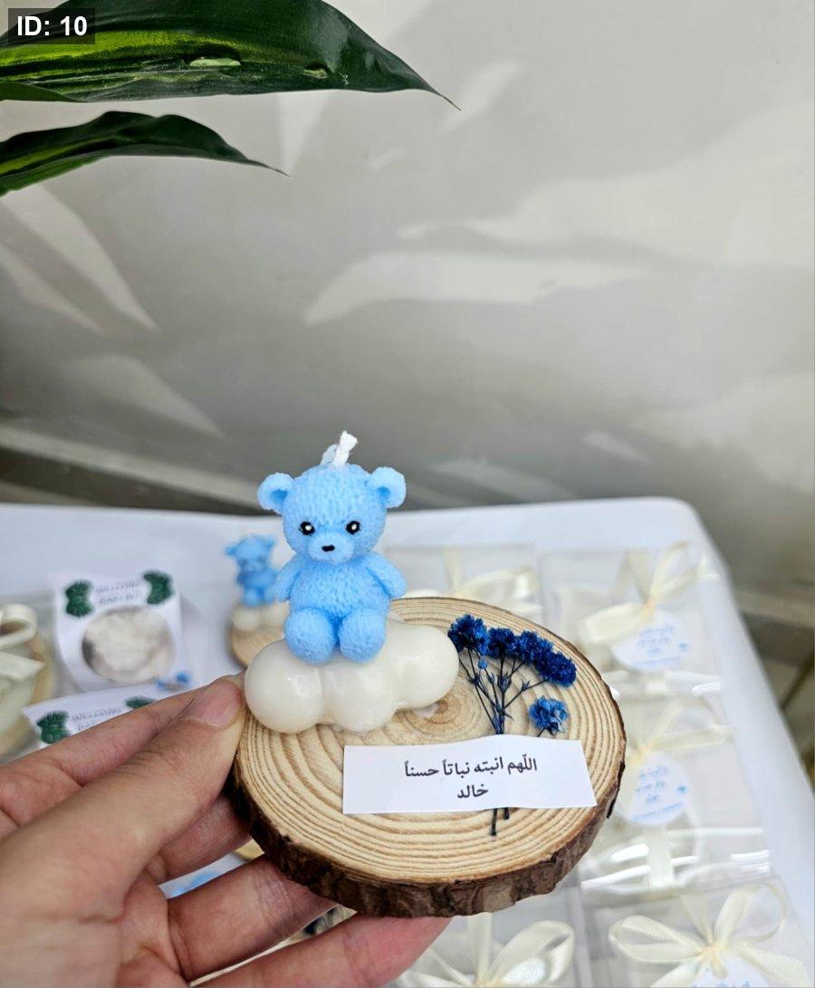 الدب تيدي على غيمة وقاعدة من خشب مع اضافة اسم البيبي وورد مع امكانية اضافة شوكلاتة .. تغليف تل
