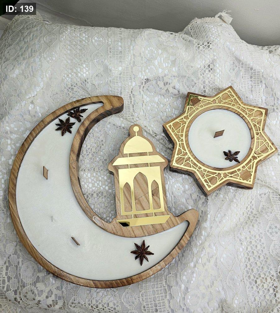 شمعة هلال رمضان خشب مزين بالاكريلك مع شكل فانوس
