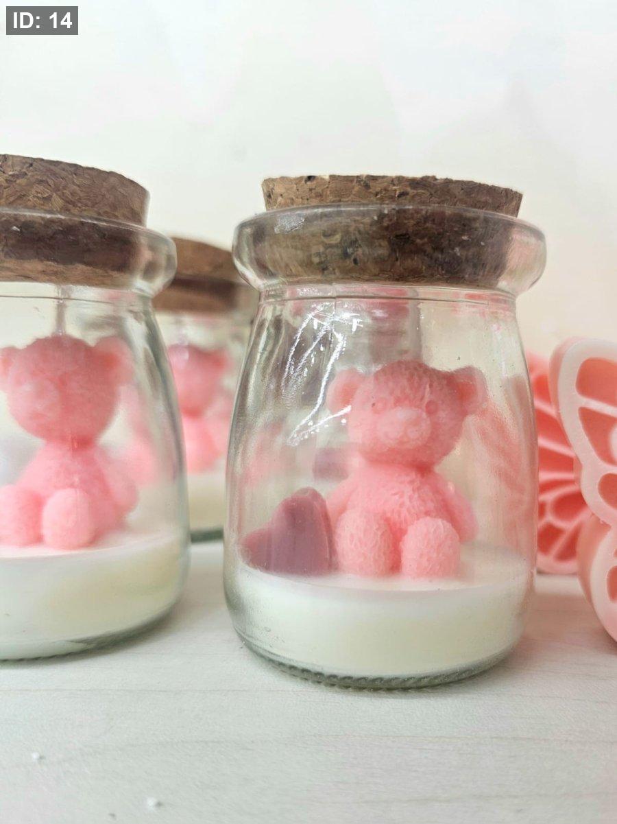 شمعة الدب تيدي بزجاج وغطاء فلين اضافة مميزة وفخمة لتوزيعاتكم
