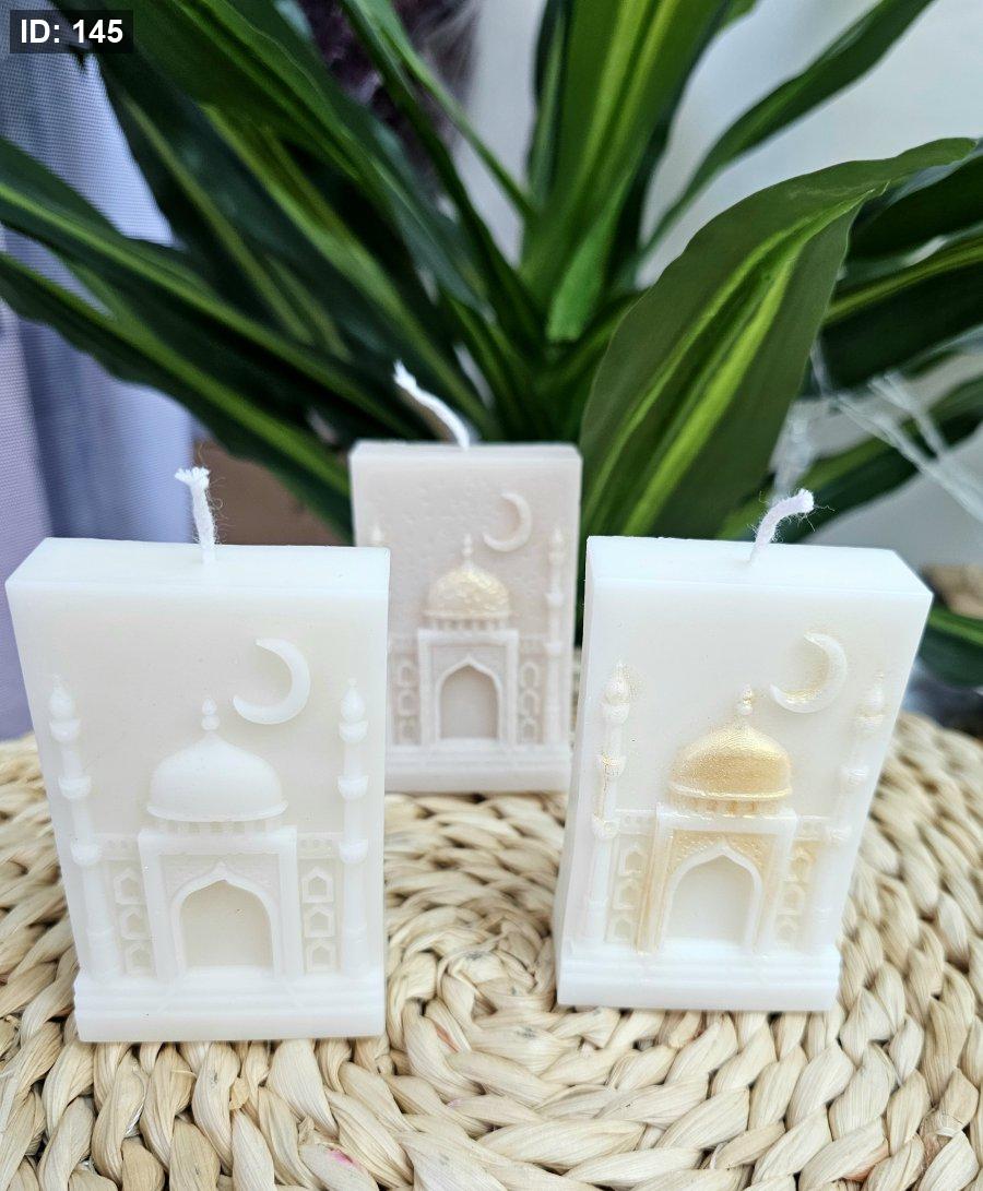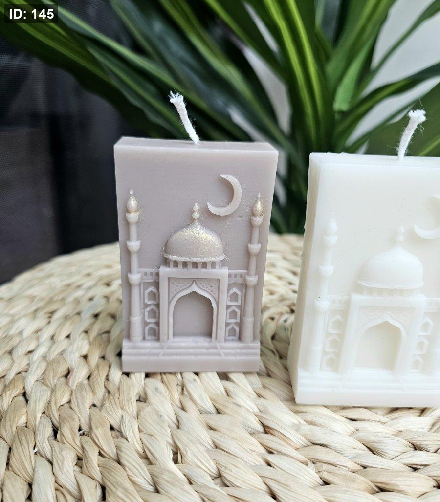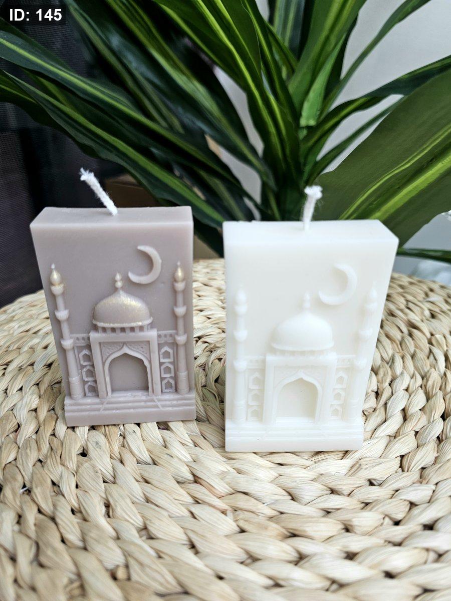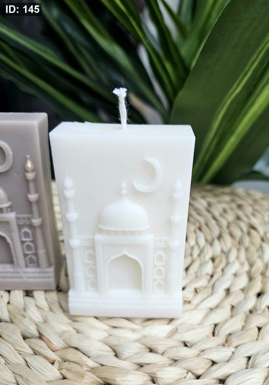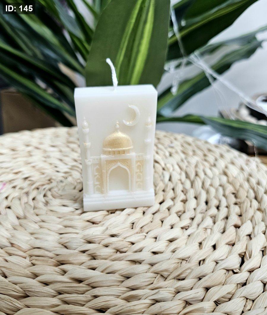 شمعة على شكل مسجد مع هلال ونجمة