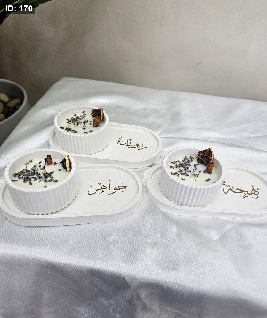صينية كونكريت مع شمعة محززة برائحة جذابة