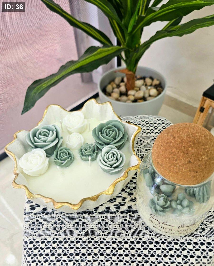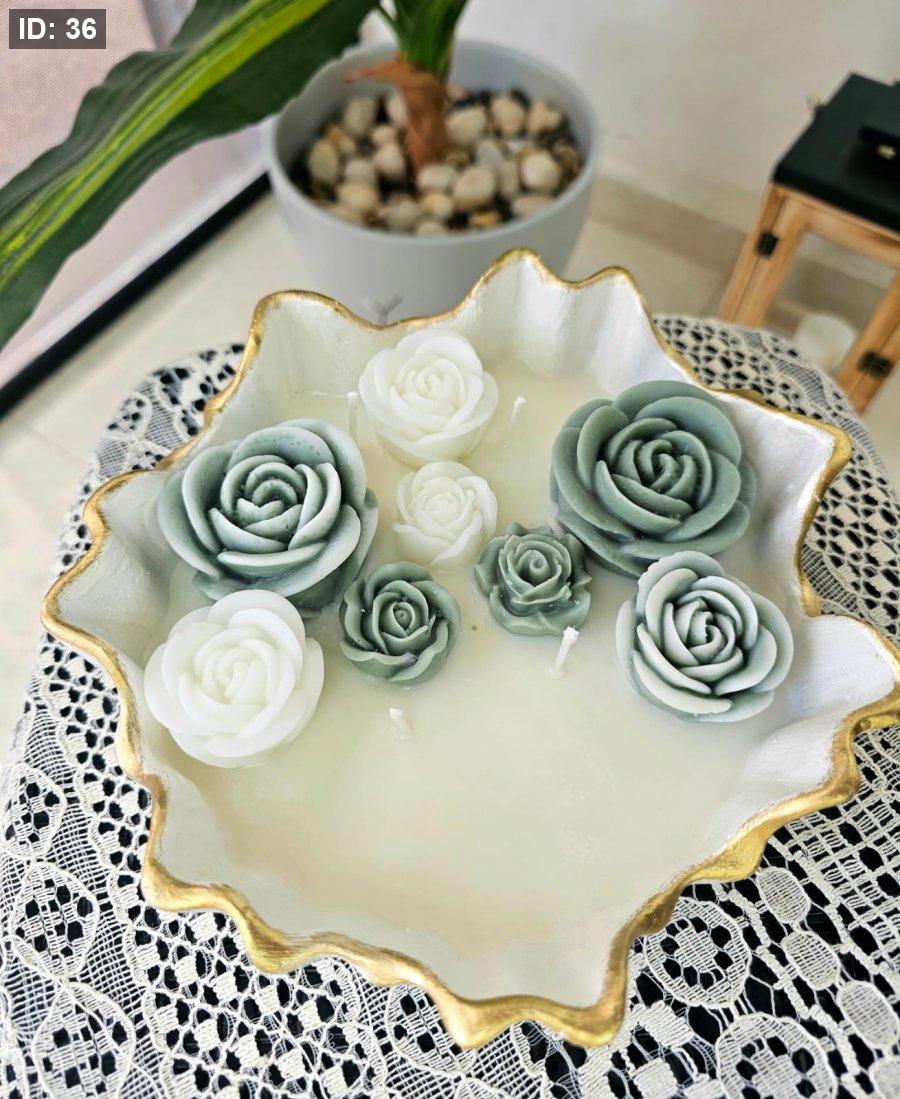 صحن الشمع باطار زكزاك باللون الأبيض وأطراف ذهبية