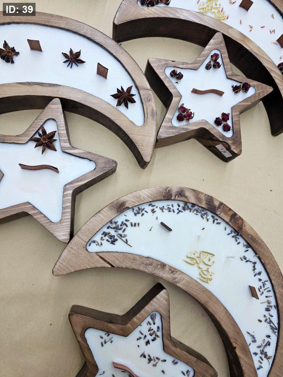 شمعة الهلال الحجم الكبير الوعاء مصنوع من الخشب