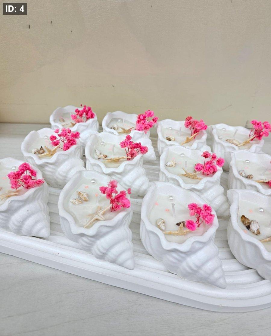 توزيعة شمعة الصدفة شكلها مميز فخمة وتقيلة خياراتها واسعة وحلوة