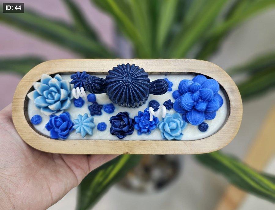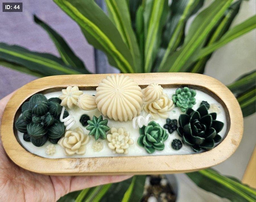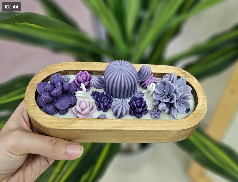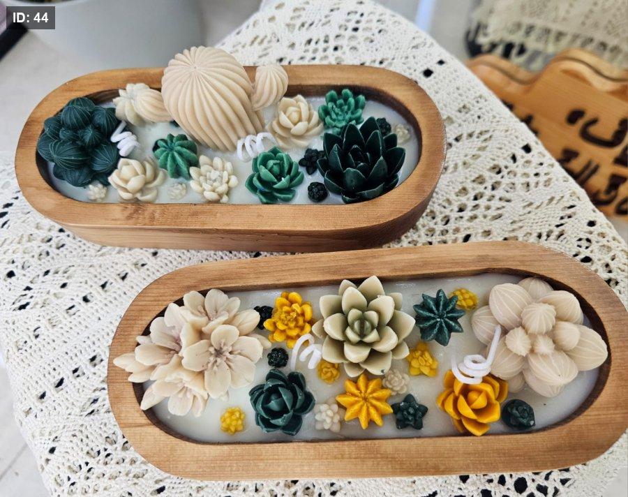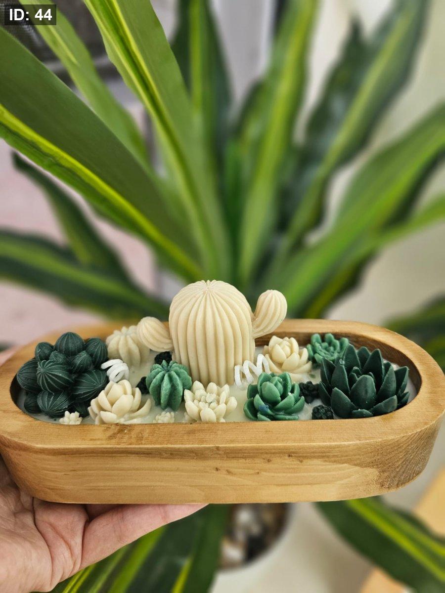 شمعة خشب بيضاوية مع صبار