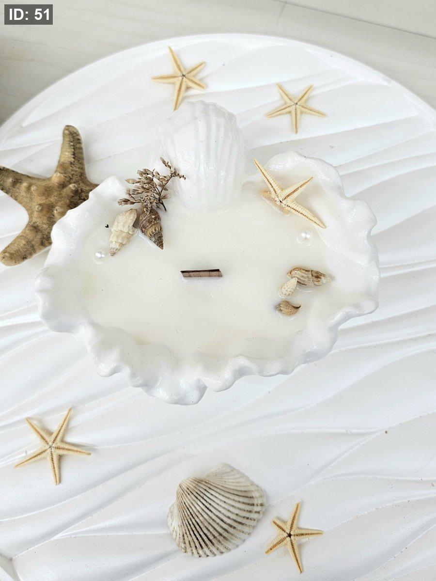شمعة عشكل قوقعة مزينة بالاحجار وزينة البحر