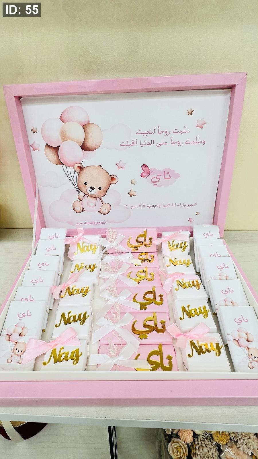 بكج شوكلاتة كرتون مع اضافة اسم واشكال اكريلك 24 حبة